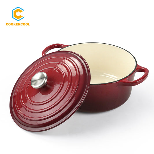 COOKERCOOL Casr Iron Enamel Dutch Oven,Red