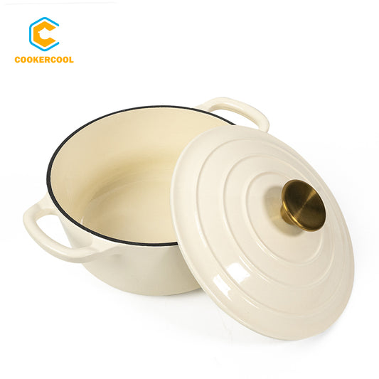 COOKERCOOL Casr Iron Enamel Dutch Oven,White