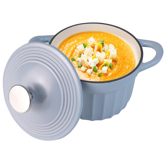 Light Blue Enamelled Vertical Grain Cookware Set